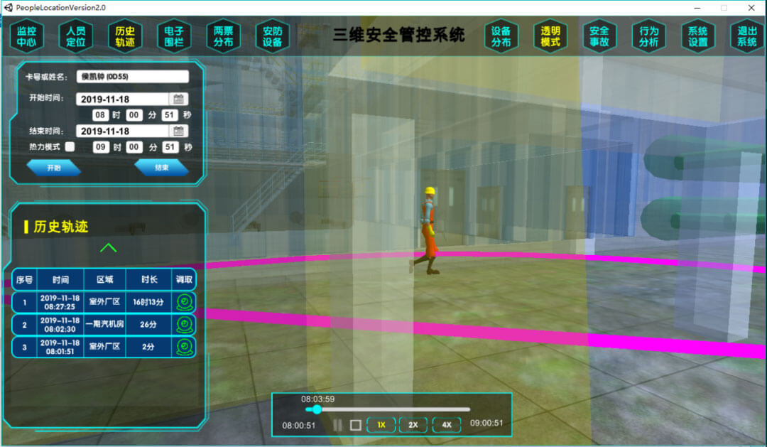通過1:1等比例的變電站三維模型,實時顯示巡檢檢修等變電站人員實時位置和人員詳細(xì)信息,尤其對高度(Z軸)進行精準(zhǔn)定位。實現(xiàn)變電站可視化管理。
